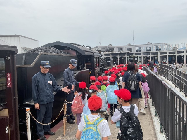蒸気機関車「SLスチーム号」体験では、汽笛の音や線路の上を走る振動を感じながら乗車を楽しみました。