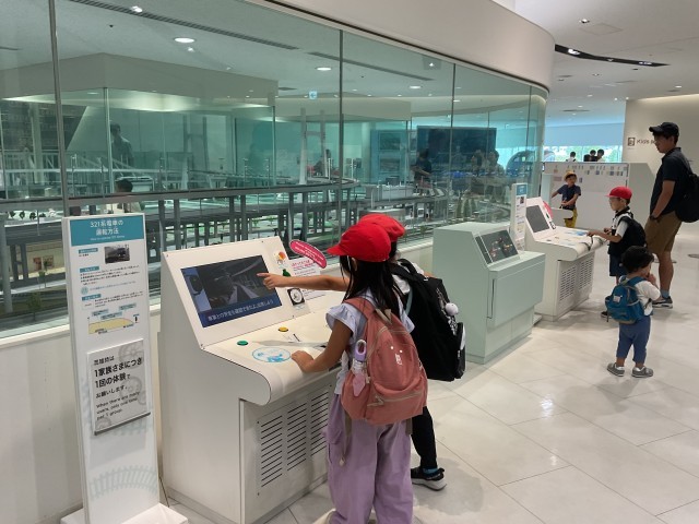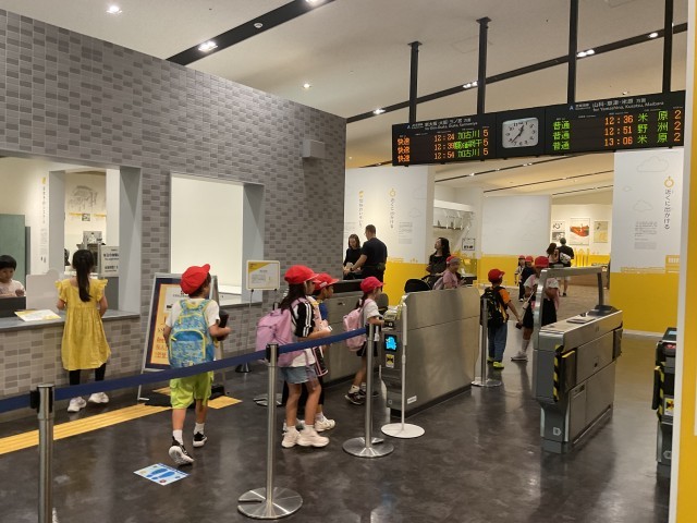 券売機で切符を買って改札を通ったり、実際の車両に乗り込んだり、模型の鉄道を運転したりと、さまざまな体験ができました。