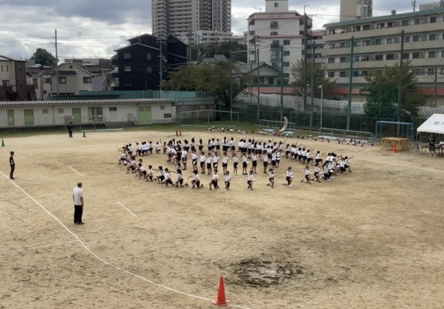運動場では4年生が、団体演技や走競技の全体の流れや細かな動きなどをチェックしていました。