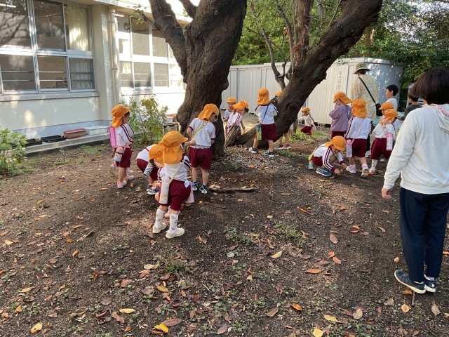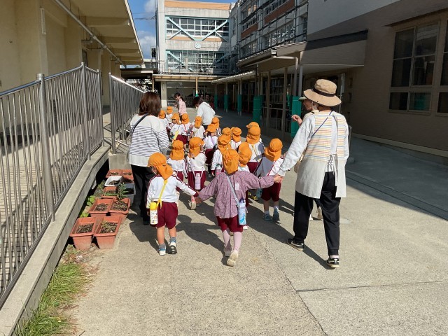 今日は、枚方幼稚園のももぐみさんが、枚方小学校に秋を見つけにお散歩に来てくれました。
