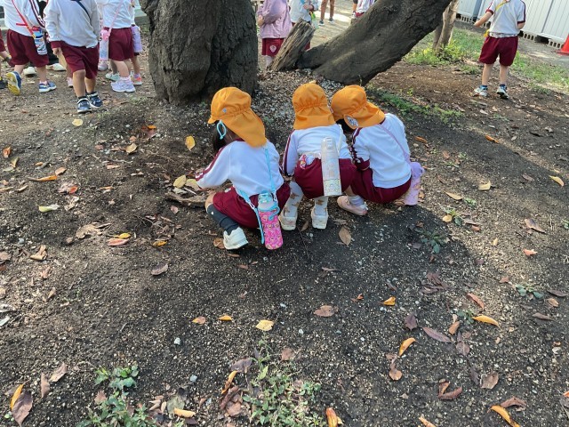 途中、秋見つけをしていた1年生が自分たちの見つけた秋をももぐみさんのお友だちに紹介したりと和気藹々とした様子も見られました。
