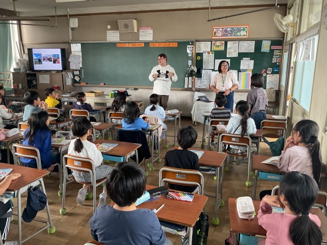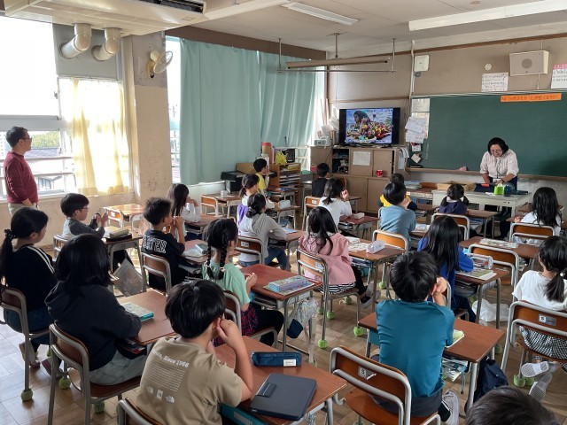 3年生の授業では、クイズを交えたりなど子どもたちが積極的に学ぼうとする場面がたくさんあり、自分たちから発言したり声をかけたりしながら英語を楽しんでいました。