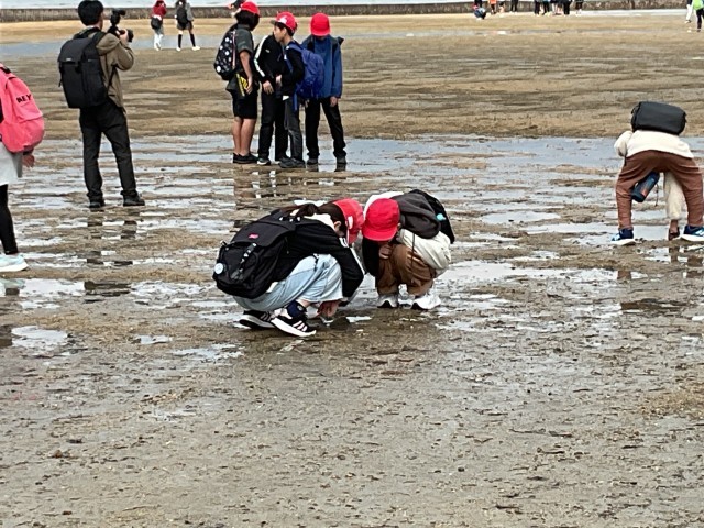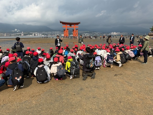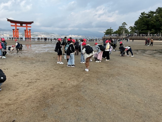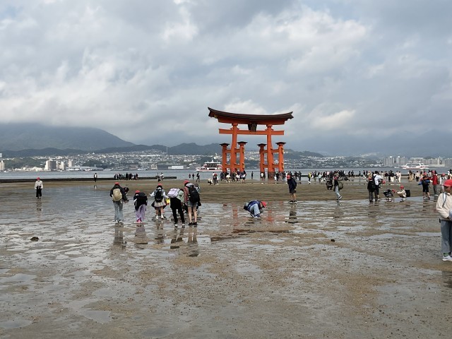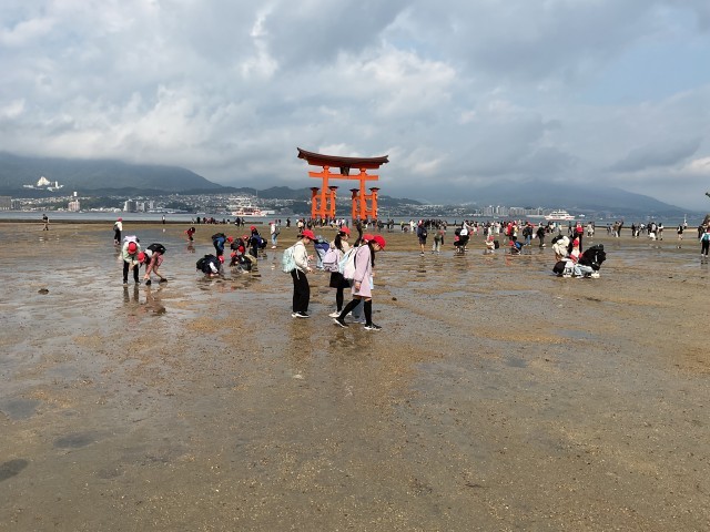 宮島水族館のあと、厳島神社の海の潮が引いていたので、浜遊びをしました。