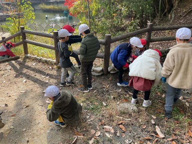 1年生が生活科の授業で、坊主池公園にどんぐりひろいに行きました。