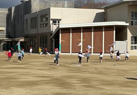 高くあげすぎてお友だちと凧糸が絡んでしまったりというトラブルはありましたが、しっかり楽しむことができていました。
