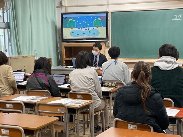 先生方が学んできたことを共有する目的ですが、今日はメーカーの方にも来ていただいて説明をしていただき、実際に操作しながら、枚方小学校の児童が使用することについての検証を行いました。