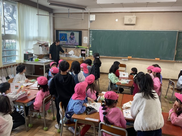 4限に1年生の授業見学を行い、お兄ちゃんお姉ちゃんが一生懸命学習している様子を見て、4月からはこんなふうなんだと興味津々の様子でした。