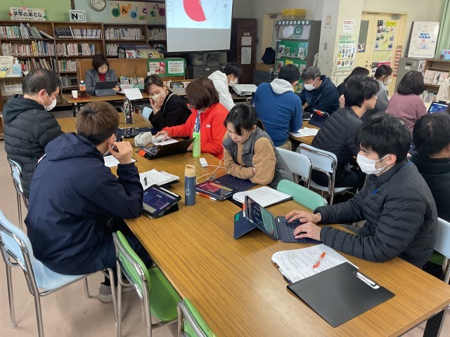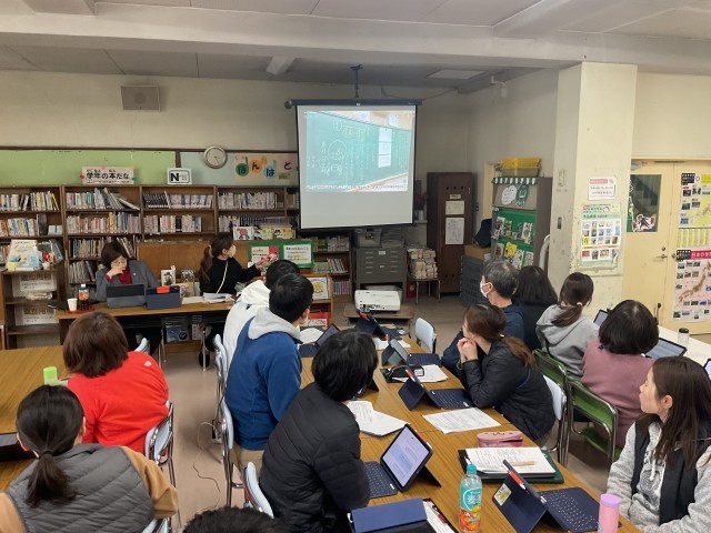 3年生の国語の研究授業を受けて、放課後に教職員研修を行いました。
