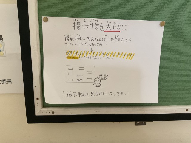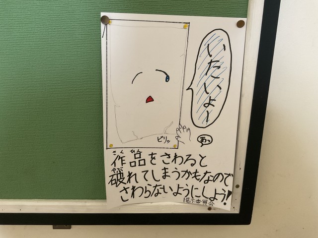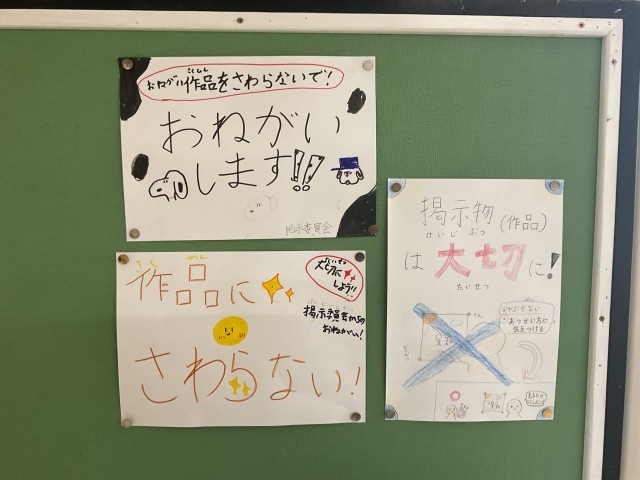 せっかく掲示板に掲示している素敵な作品が本人のもとに戻ってくるときに、破損して戻ってくることがあるということがあり、ポスターを掲示してくれました。