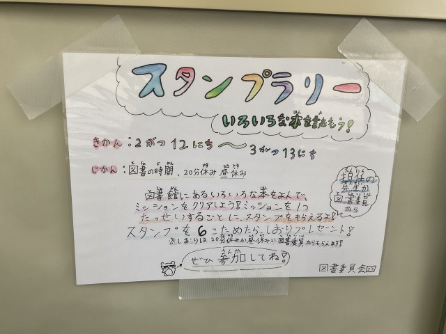 図書委員会から、スタンプラリーの案内のポスターが貼ってありました。