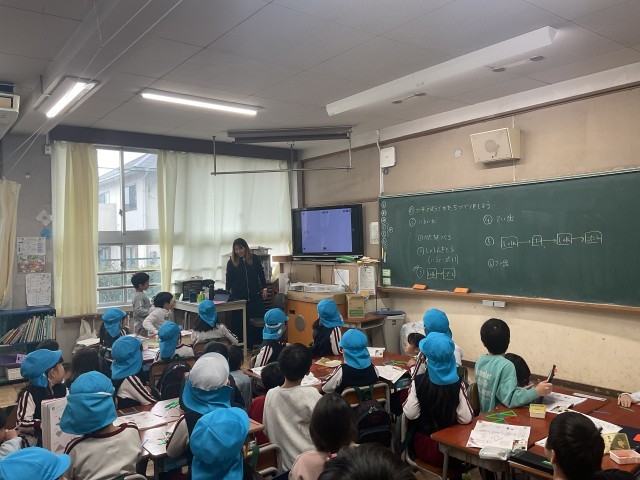 今回は算数の授業に一緒に参加し、数え棒を使ってさまざまな形を作る学習に取り組みました。