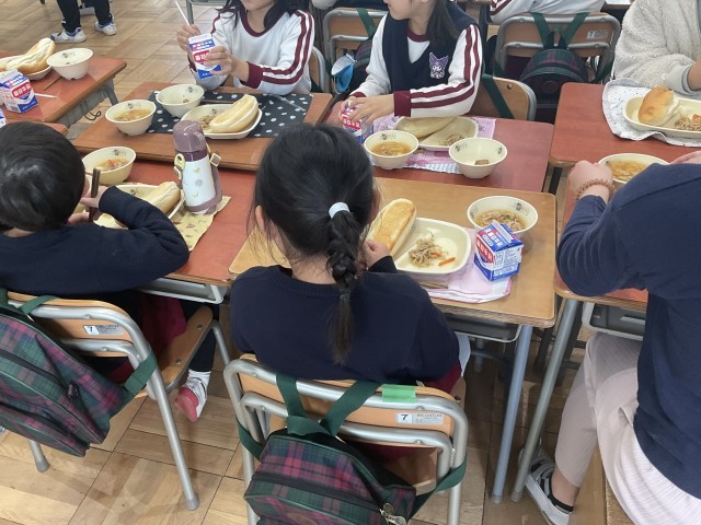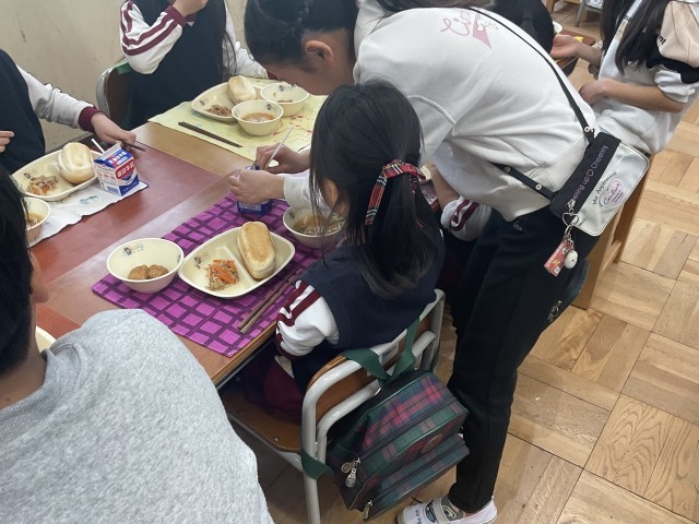 また、園児の皆さんが楽しみにしていた給食の時間には、5年生が園児の分も丁寧に配膳しました。