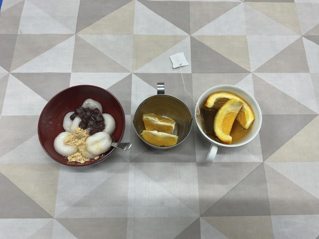 5年生が調理実習で白玉団子とオレンジティーを作りました。