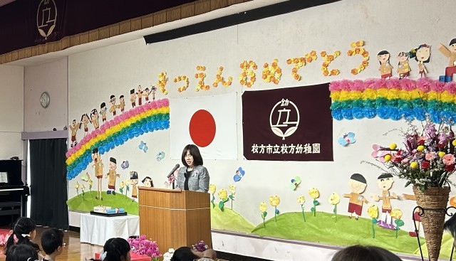 今日は、枚方幼稚園で卒園式があり、来賓として出席しました。