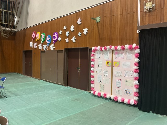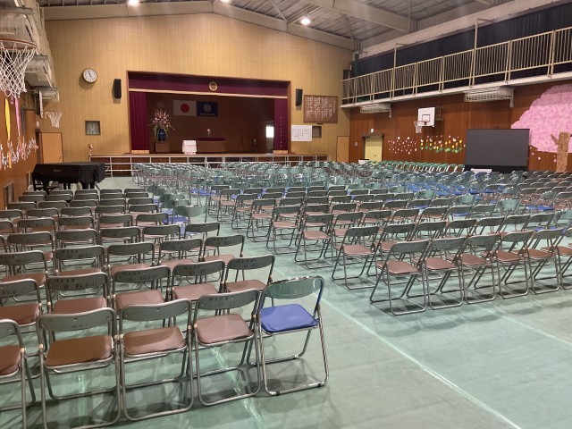 体育館のセッティングや掲示板の飾り付け、教室や廊下、トイレなどなど役割分担をしながら、6年生のために丁寧に取り組み、素晴らしい卒業式会場の準備ができました。