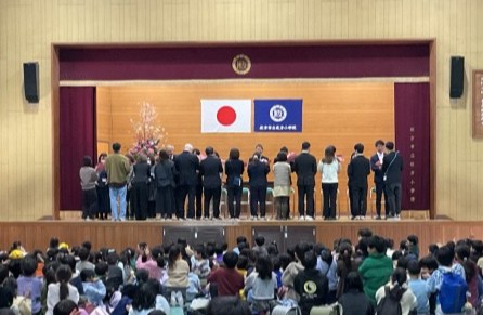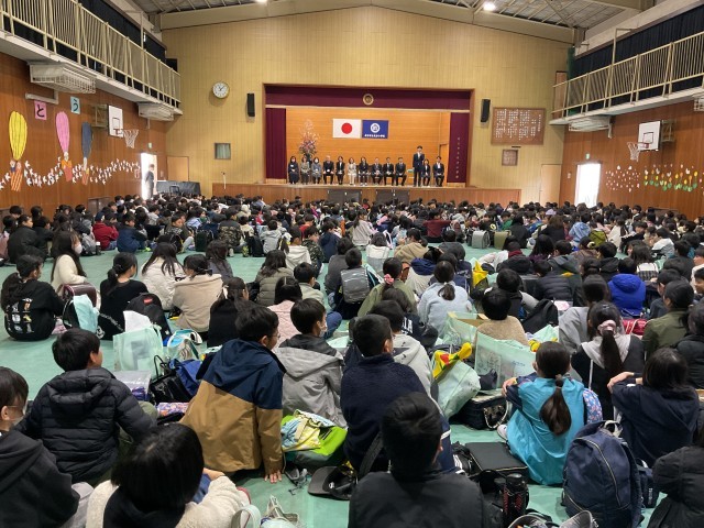 枚方小学校を去られる先生のお別れのお話を聞いて、涙あり笑いあり、子どもたちの温かい気持ちが伝わるとても素敵な離任式になりました。