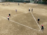 12月17日(水)4年生の体育の授業の様子4年生が運動場で「手打ち三角ベースボー...