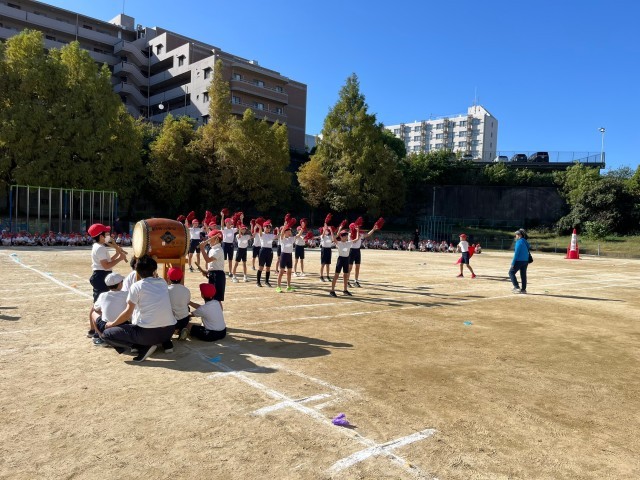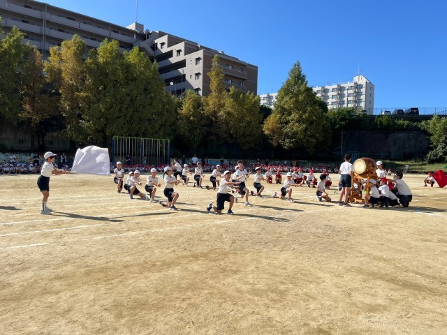 赤組・白組が工夫を凝らして、声を張り上げて、運動会を盛り上げます。