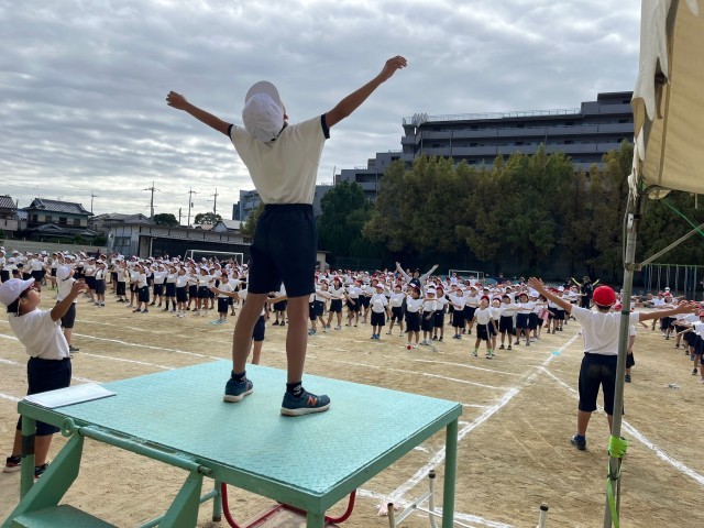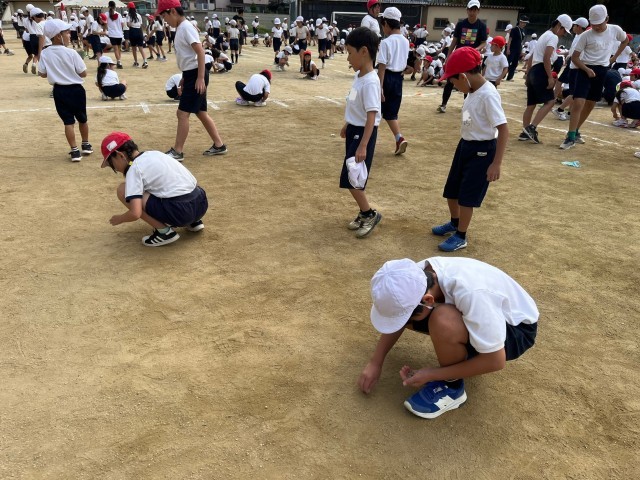 全体練習では、閉会式と整理体操の練習をし、最後に、全員で石拾いをしました。