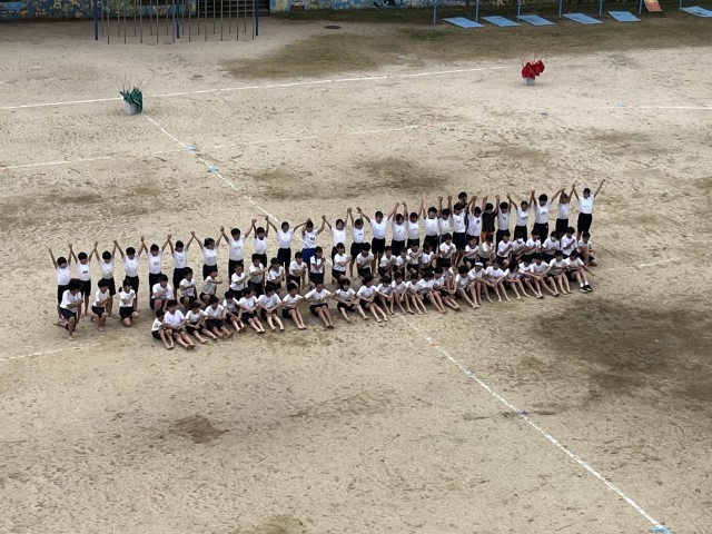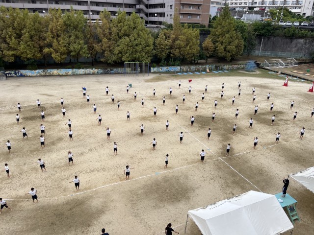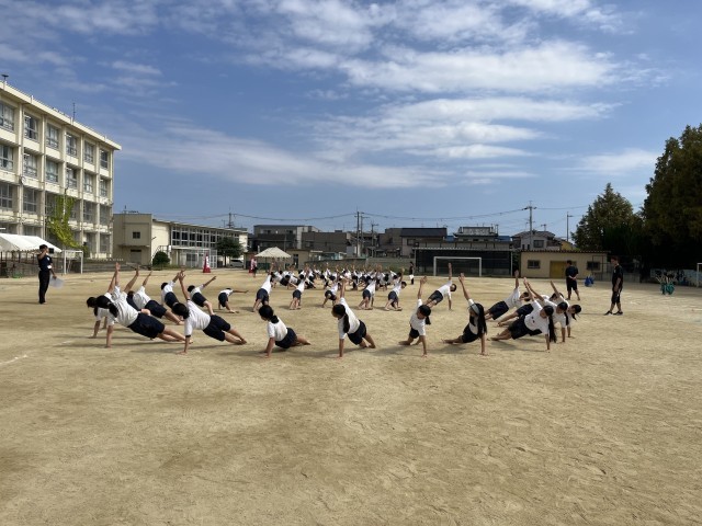 6年生の後半は、全身で組み立て体操を全員で演じます。