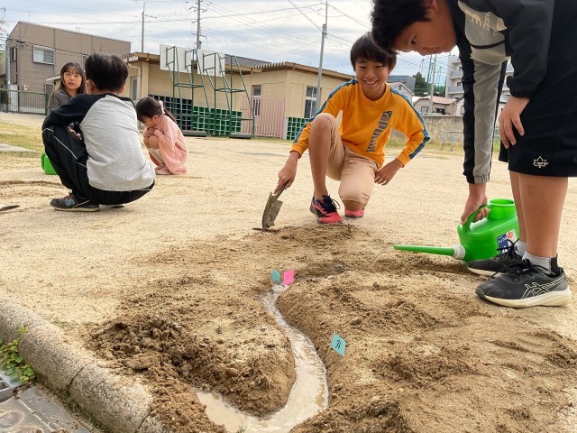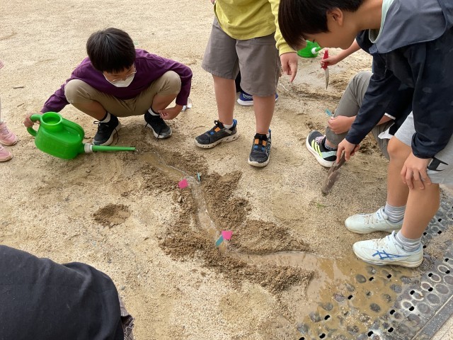 流れのはたらきがわかるように、小さな🚩を立てて調べます。
