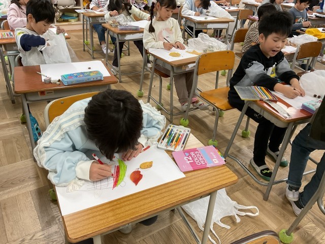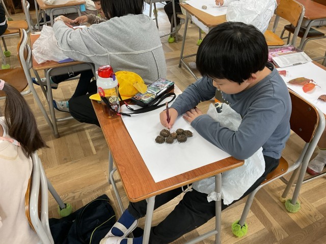 1年生が秋をさがしに、近くの公園に行きました。
