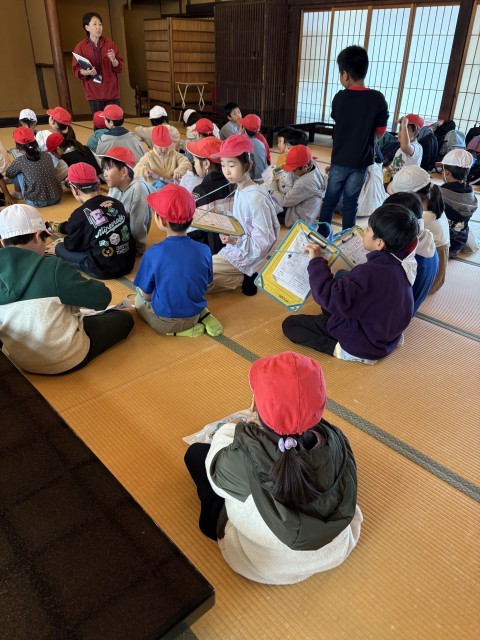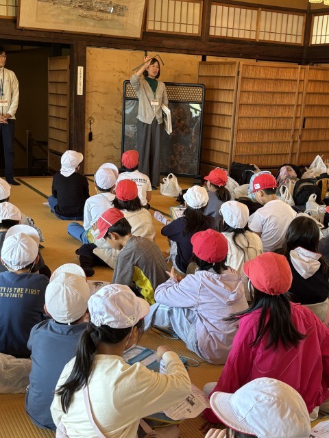 今日は、3年生の校外学習でした。まずはじめに、市立枚方宿鍵屋資料館へ行きました。