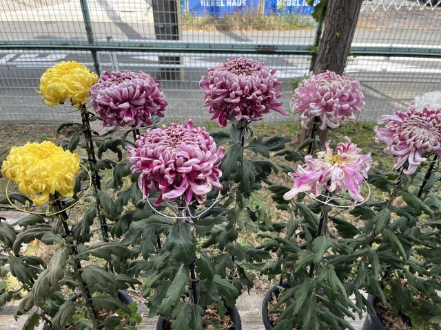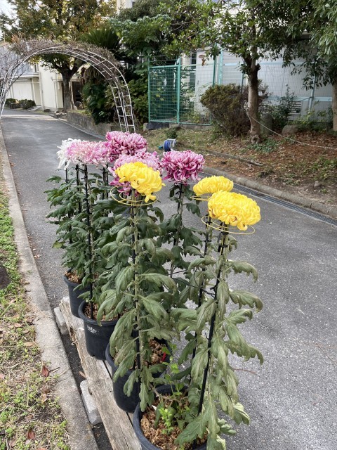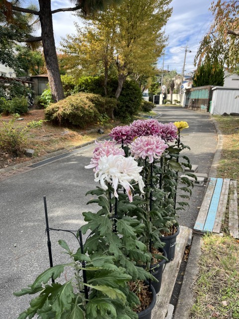 赤、白、黄色と、3色の菊が並んで、心が癒されます。