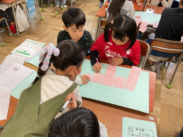 たくさんの人に見られながらも、子ども達は一生懸命考え、まとめ、友達と交流をしました。