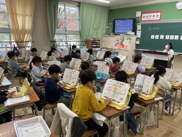 1年生は、楽器に、鍵盤ハーモニカを使っています。