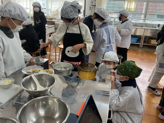 ごはんは、お米を研いで、鍋に入れて、ぐつぐつ炊きます。