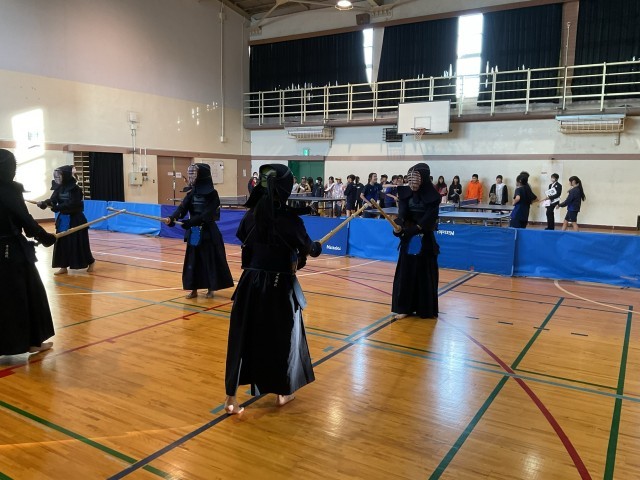体育館では、バレーボール部、剣道部、卓球部が活動しています。