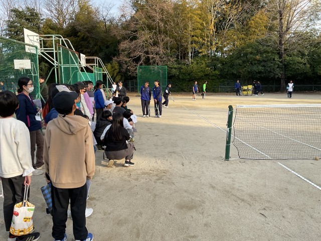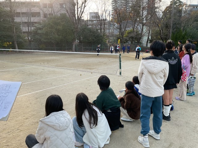 運動場と中庭のテニスコートでは、テニス部が活動しています。