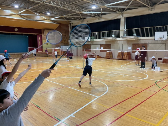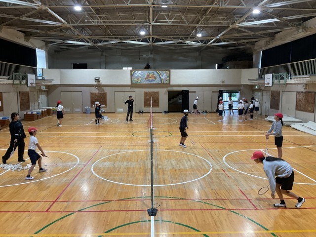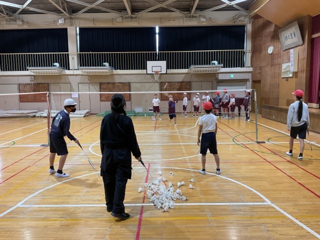 体育館ではバドミントン、廊下では卓球部が、元気な声を出して活動しています。