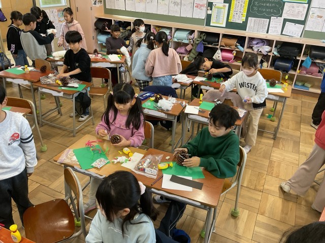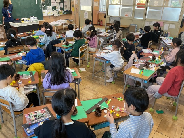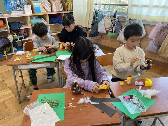 そのツリーに、自分で持ってきた飾りをデコレーションしていきます。