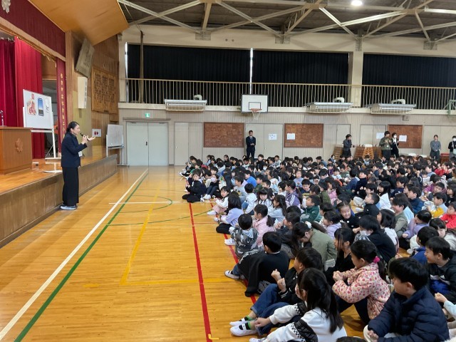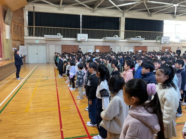 体育館に、全員で532人の子ども達が集まり、3学期を元気にスタートさせました。