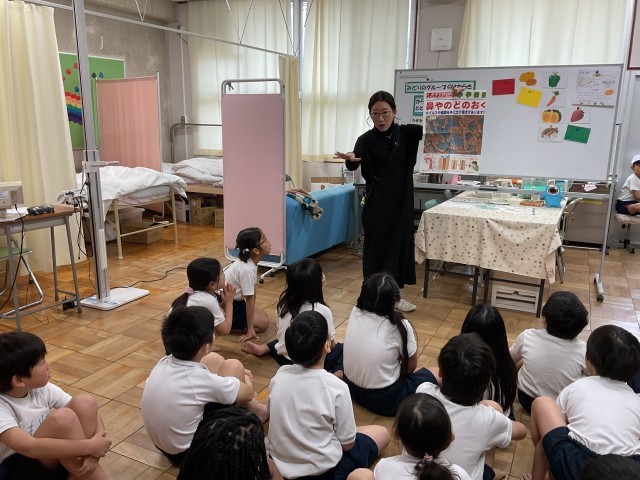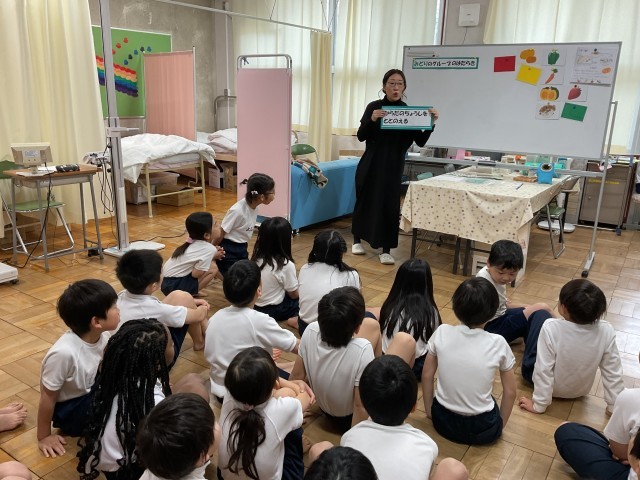 今日の2年生の二測定では、養護教諭から、緑のグループのはたらきについてお話がありました。