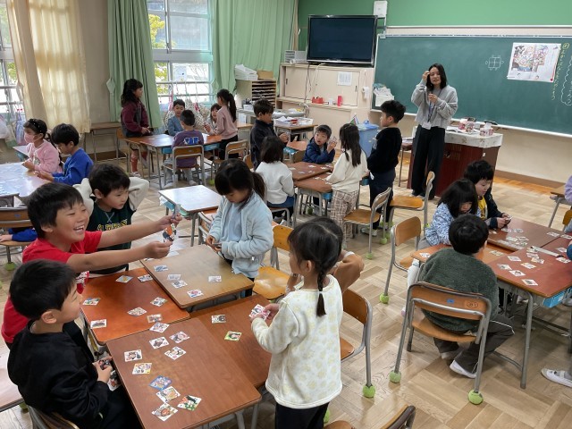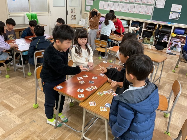 机の上に並べられたカルタを見ているだけで、お話が思い出されて、楽しくなってきます。