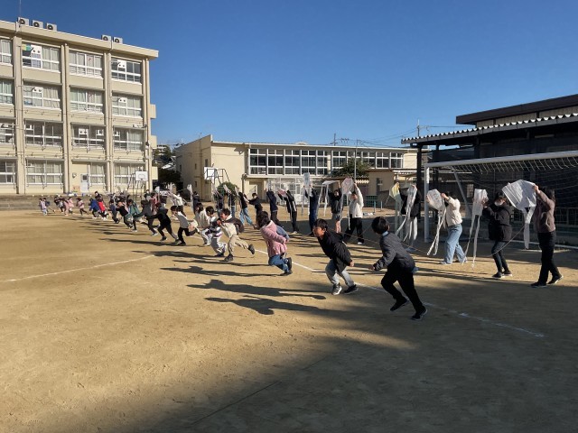 寒い朝でしたが、いいお天気の中、運動場でしました。