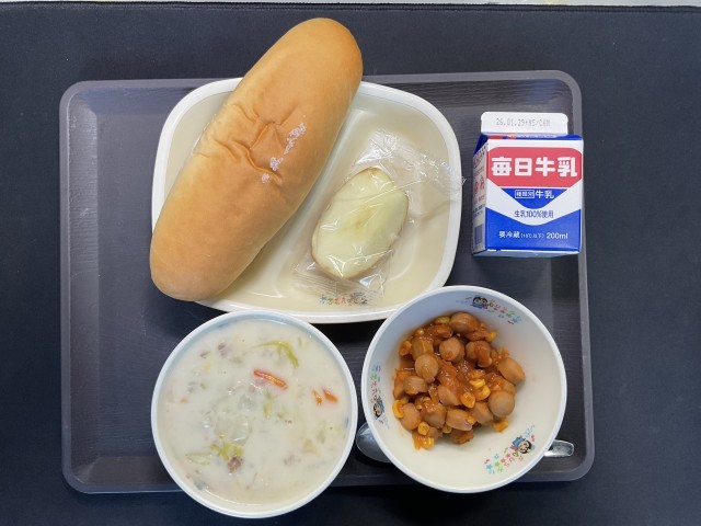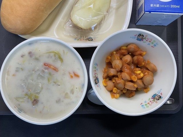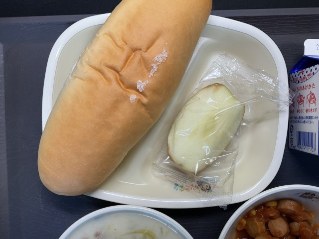 今日の給食にりんごが出ました。