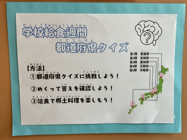 今年度の給食週間は、「都道府県ごとの郷土料理を味わおう」です。