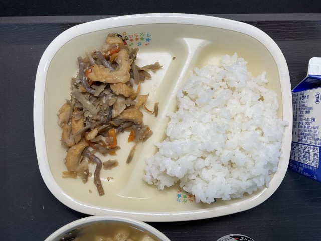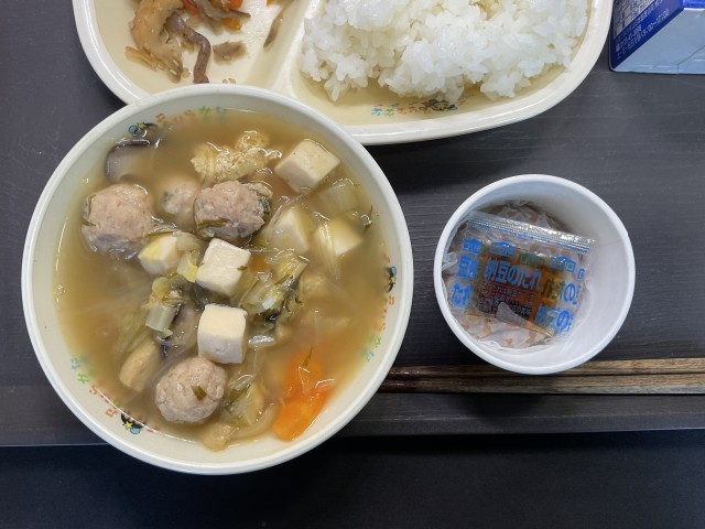 給食では、食べやすいように、鶏団子にしてもらっています。