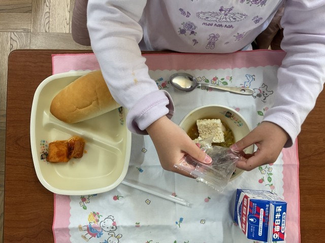 八宝菜にそのまま入れたり、入れて割ったり、割って入れたり・・・。