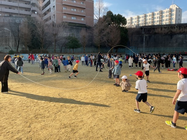 1月から「大縄チャレンジ月間」として、全校で大縄跳びに取り組んできました。