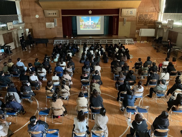 音楽の時間に取り組んできた合奏を、学年全員で発表しました。