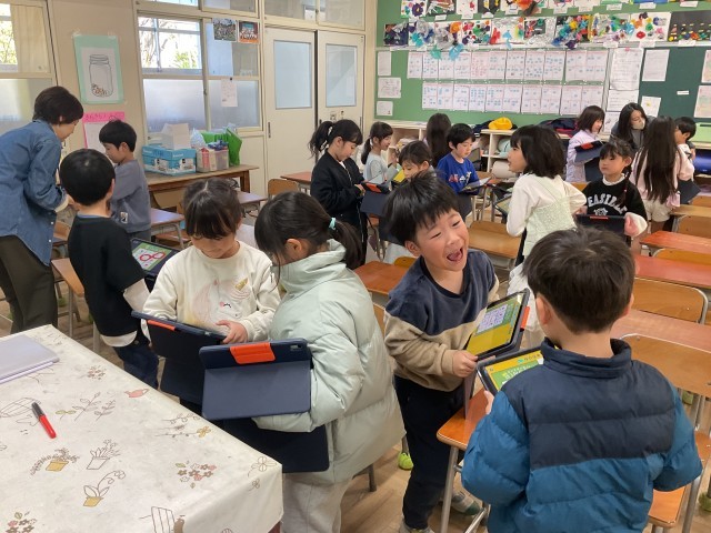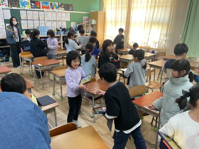 1年生の外国語特別授業は、楽しく英語に親しむことがねらいです。