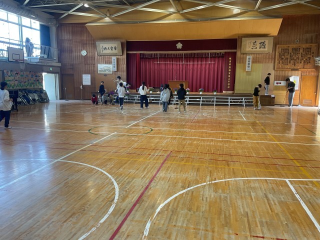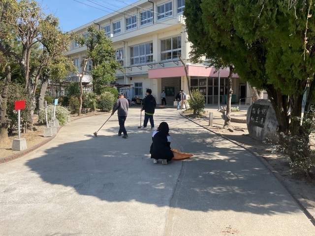校舎周りの掃除、玄関、廊下、そして体育館。