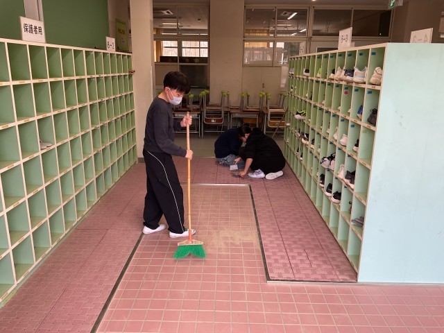 1年間、自分たちが使った教室、廊下、靴箱、階段・・・。