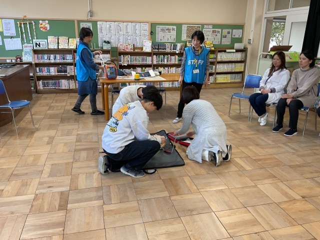 毎年、年度当初に、教職員の「心配蘇生法」の研修を行なっています。