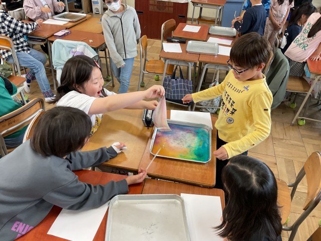 紙に写しとる時のドキドキした気持ちと、どんな模様になるのか想像がつかないことが、マーブリングの醍醐味であり、おもしろさです。
